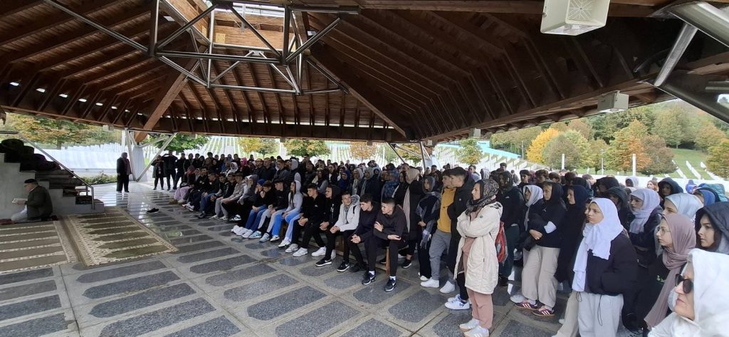 Dana 14. oktobra, ove godine, ispred Zemaljskog muzeja Bosne i Hercegovine na put ka Srebrenici ispraćena je grupa učenika drugih razreda naše škole u okviru programa “Njegovanje kulture sjećanja”, koji Ministarstvo za odgoj i obrazovanje Kantona Sarajevo realizira uz podršku Vlade i u saradnji s Institutom za razvoj preduniverzitetskog obrazovanja KS.