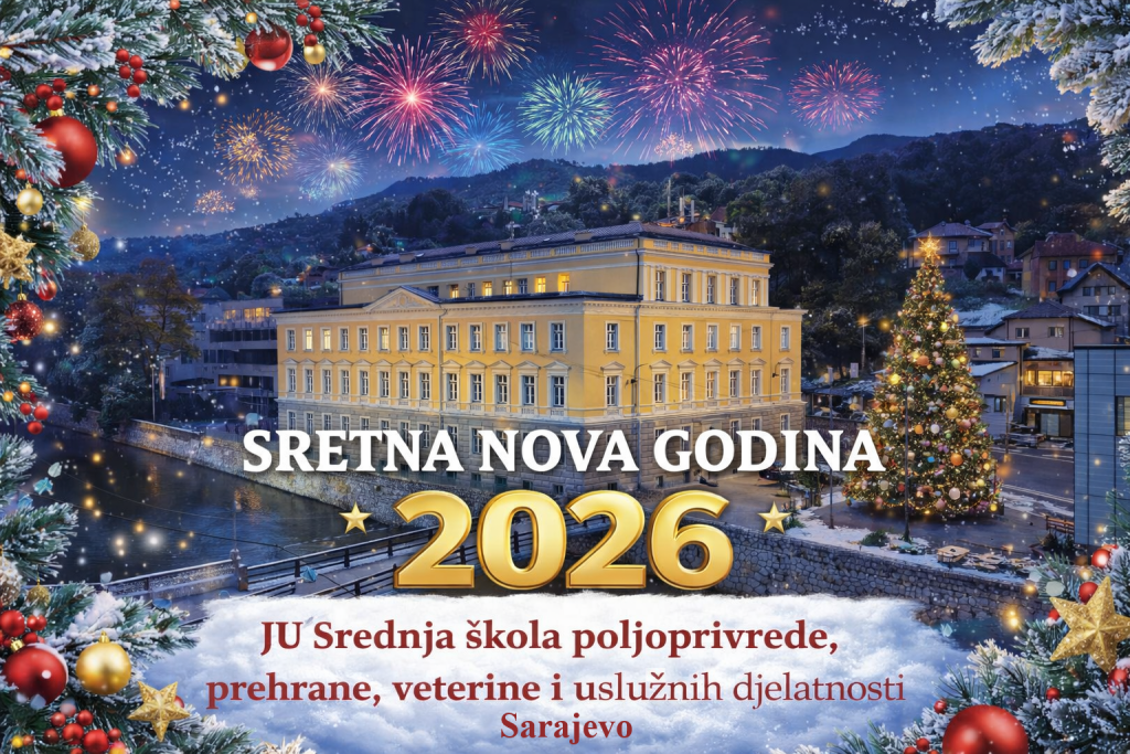 Sretnu i uspješnu Novu godinu želi vam V.d. direktor, Mr. sci. Nevenko Čengić sa kolektivom JU Srednje škole poljoprivrede, prehrane, veterine i uslužnih djelatnosti Sarajevo